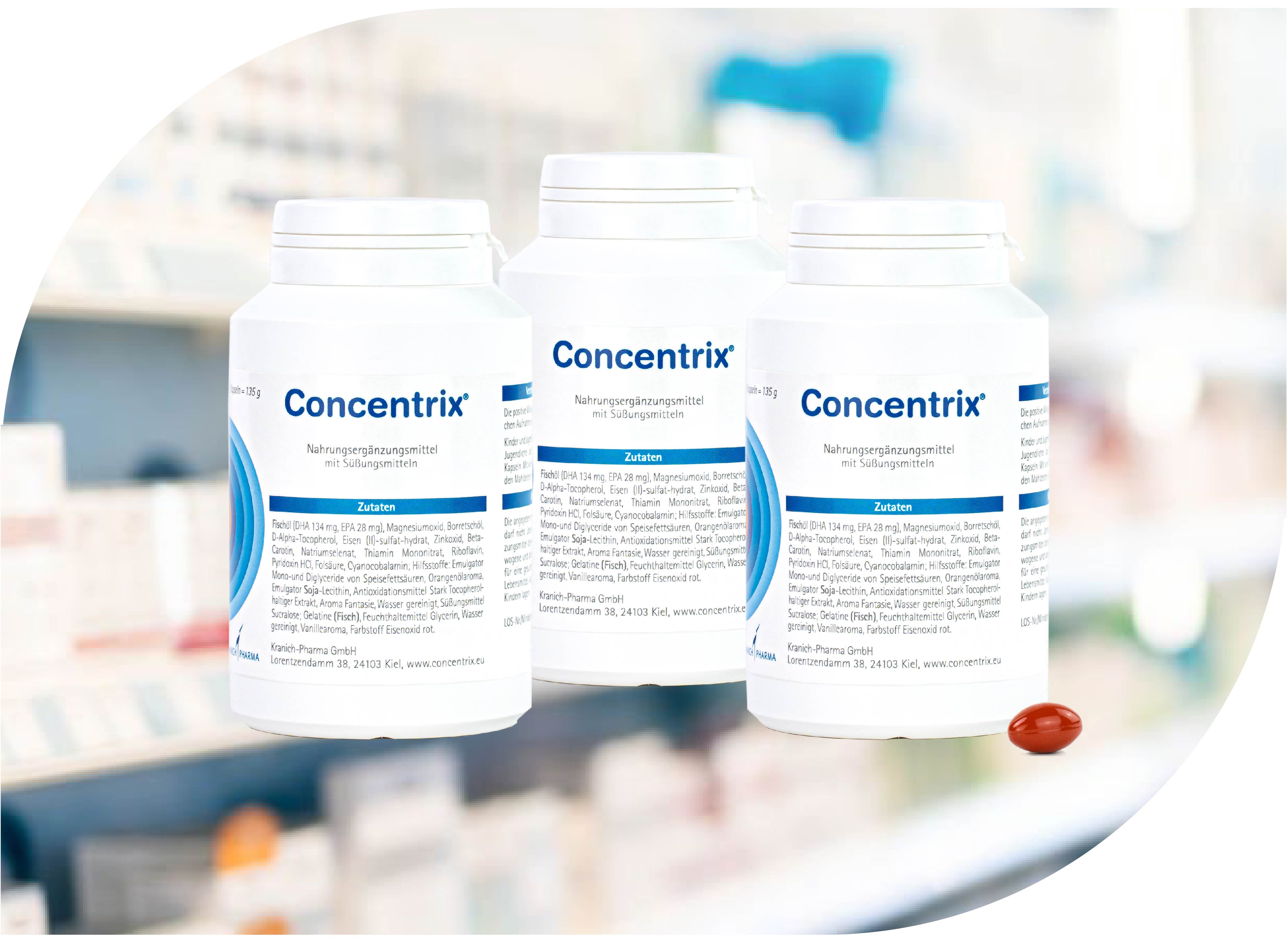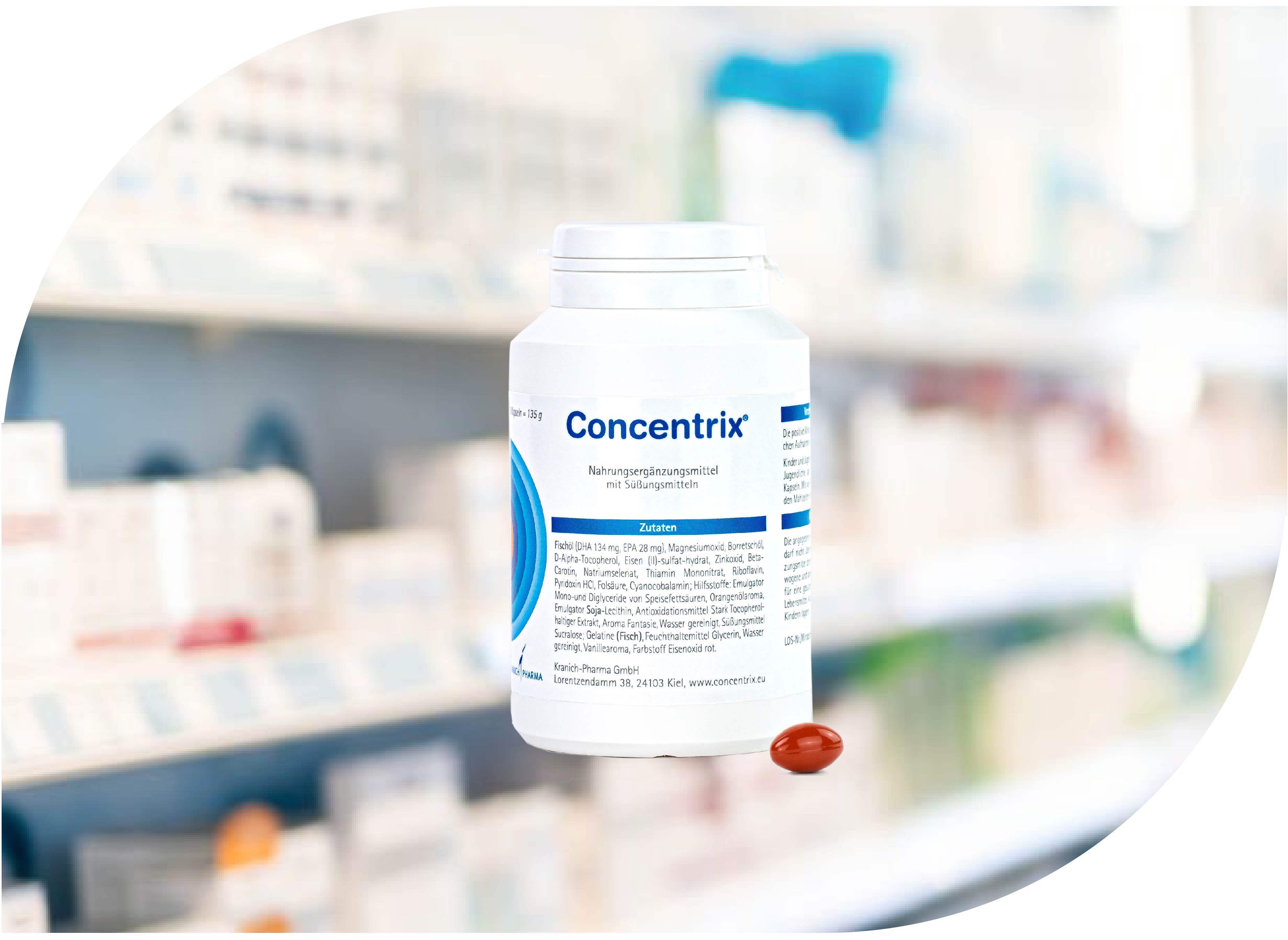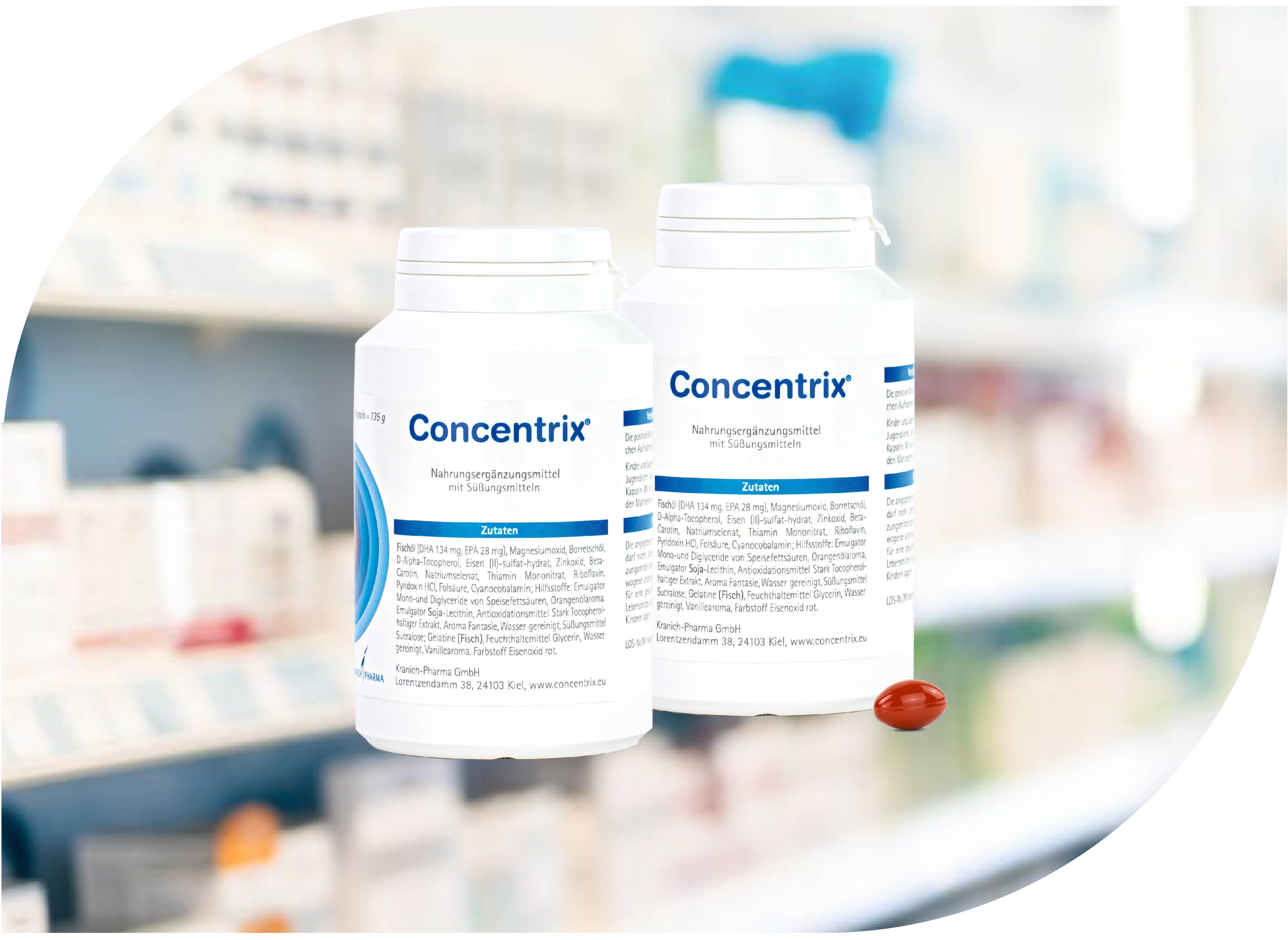 Auf der Concentrix® Homepage informieren wir umfassend über Concentrix® und seine Inhaltsstoffe. Im Concentrix®-Magazin erfahren Sie in informativen Artikeln, wie man auf vielfältige Art und Weise Konzentration und Aufmerksamkeit unterstützen kann. Außerdem können Sie hier Concentrix® zum vergünstigen Preis im Abo bestellen.
