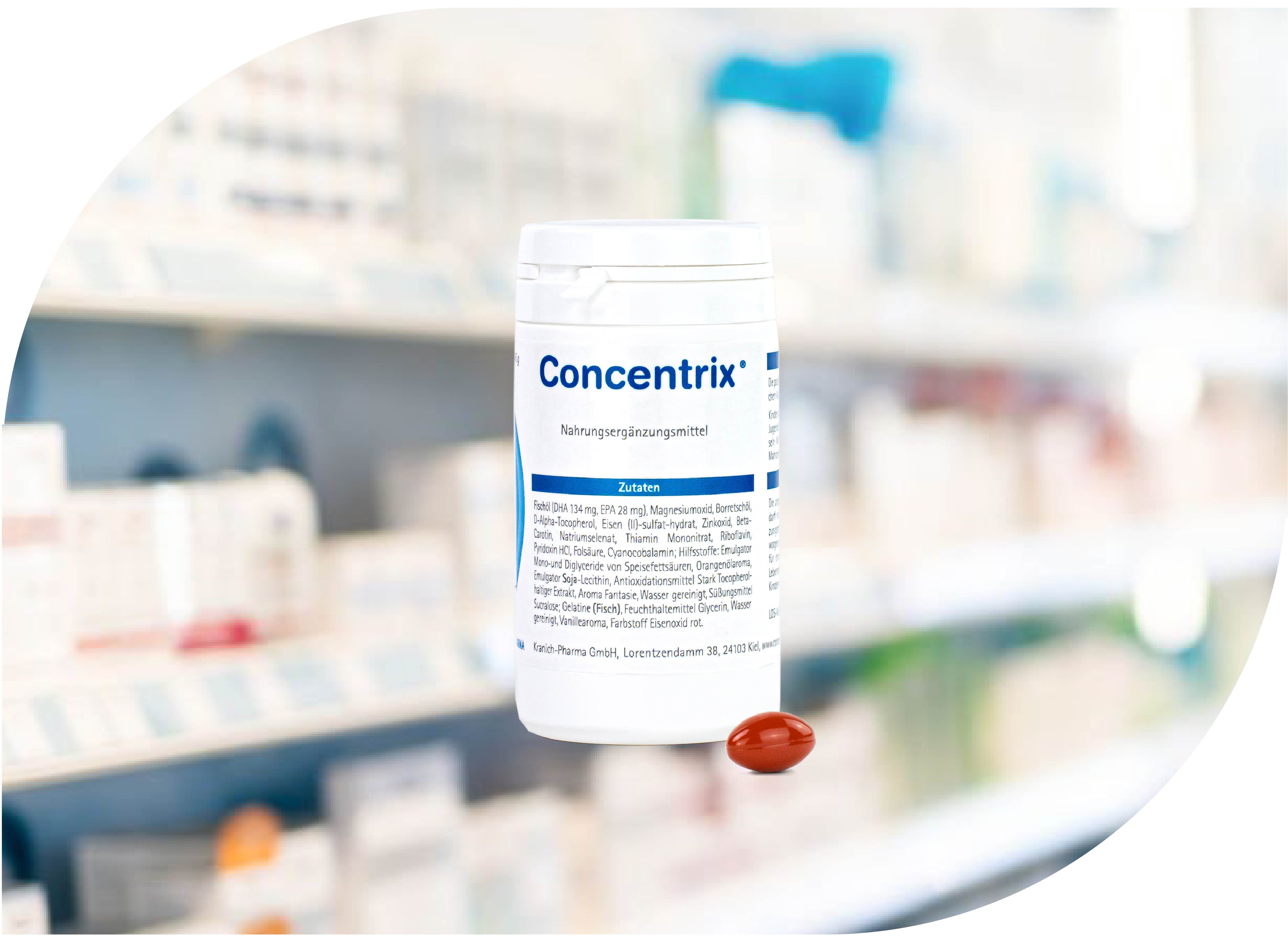Zur Unterstützung von Konzentration und Aufmerksamkeit wurde Concentrix® vor 15 Jahren von Pharmazeut Dr. Lukas Vogel entwickelt. In Zusammenarbeit mit Fachärzten und Psychiatern wurde das Präparat im Laufe der Zeit unter Berücksichtigung der aktuellen wissenschaftlichen Datenlage optimiert, sodass es in seiner aktuellen Zusammensetzung seine ideale Wirkung entfalten kann.